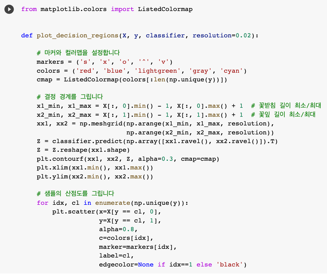 - 파이썬 -> 선형 분류 알고리즘 구현