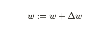 가중치 변화량 Δw: 음수의 그레이디언트*학습률 η