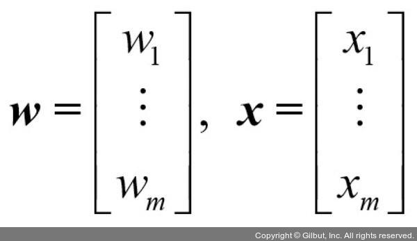 입력 값 x, 상응하는 가중치 벡터 w 선형 조합 -> 결정 함수(∅(x)) 정의