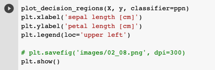 퍼셉트론 구현 사용 -> 학습률 eta, 에포크 횟수(: 훈련 데이터셋을 반복하는 횟수) n_iter