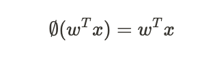 입력 값 x, 상응하는 가중치 벡터 w 선형 조합 -> 결정 함수(∅(x)) 정의