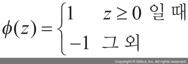 *출력 값: 앞서 정의한 단위 계단 함수로 예측한 클래스 레이블
