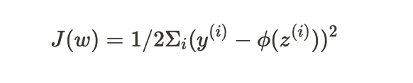 - y^{(i)}: i번째 훈련 샘플의 진짜 클래스 레이블(true class label)