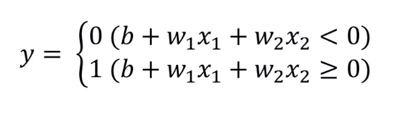 - 입력 신호*가중치 + 편향 >= 0 -> 1
