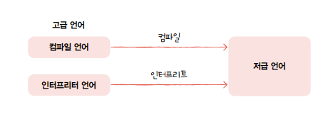 고급 언어 -(컴파일/인터프리트)-> 저급 언어