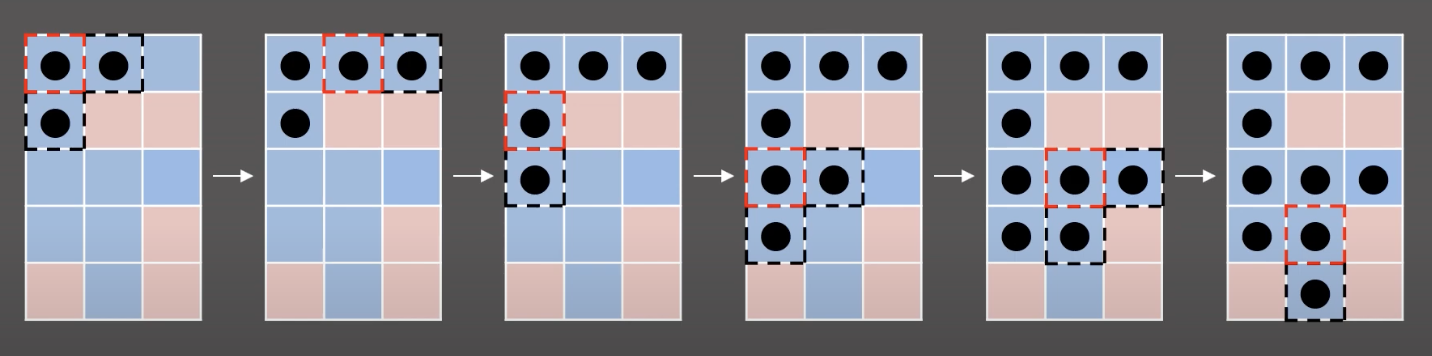 => 큐의 front -> pop + 인접한 칸 중에 방문 X 파란색 칸에 표시 + 큐에 넣음