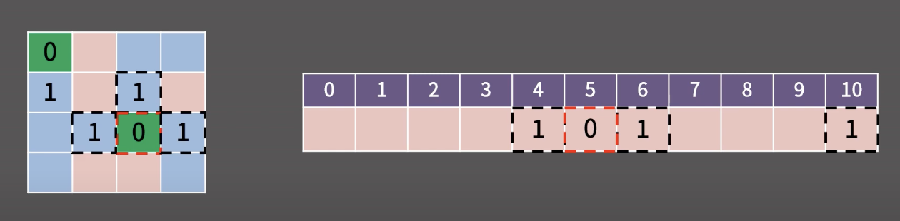 // 1: 파란 칸, 0: 빨간 칸