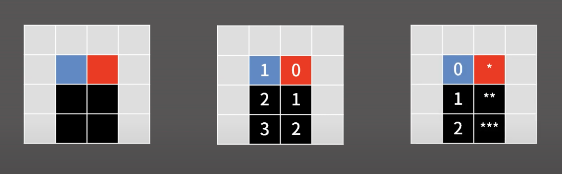 => 2개의 칸에 방문했다는 표시 + 큐에 넣음