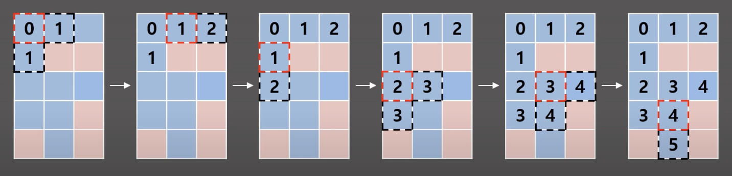 - 다차원 배열에서 각 칸을 방문할 때 너비를 우선으로 방문하는 알고리즘