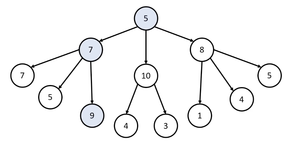 루트 노드부터 시작하여 거쳐 가는 노드의 합을 최대로 만들고 싶음