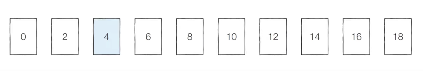 이미 정렬된 10개의 데이터 중 값이 4인 원소 찾기