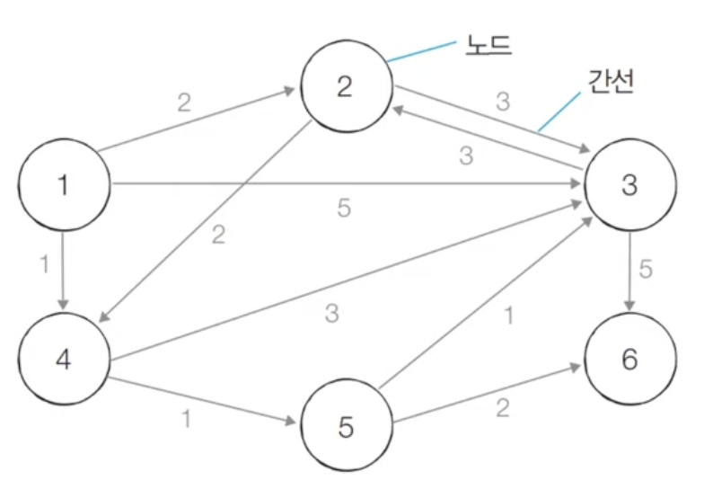 - 지점 간 연결된 도로 -> 그래프에서 간선으로 표현