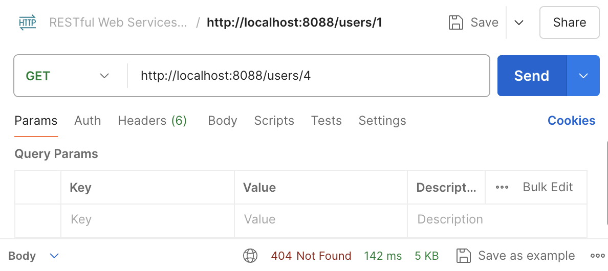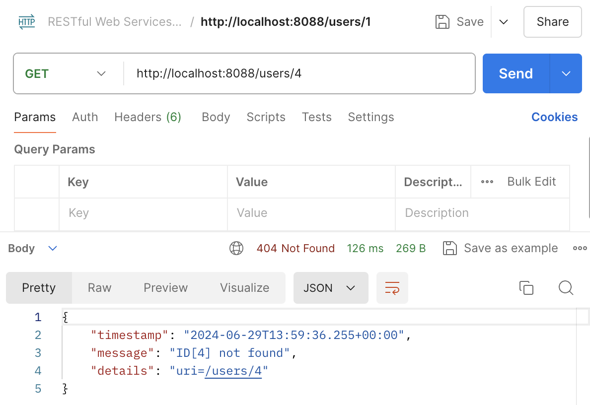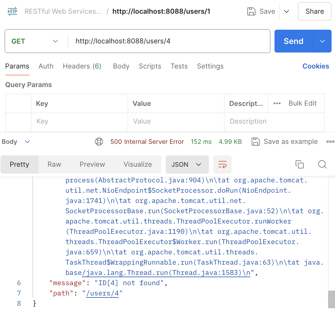 user id: 4 요청 -> 존재 X => 클라이언트 잘못: 4xx 오류