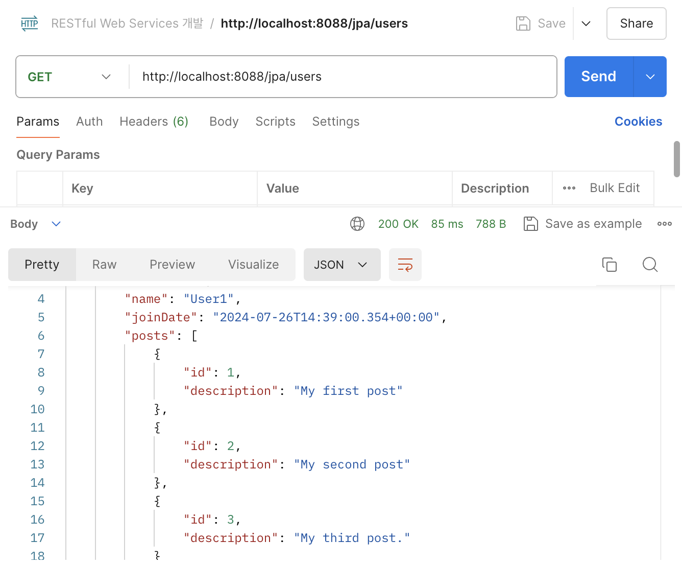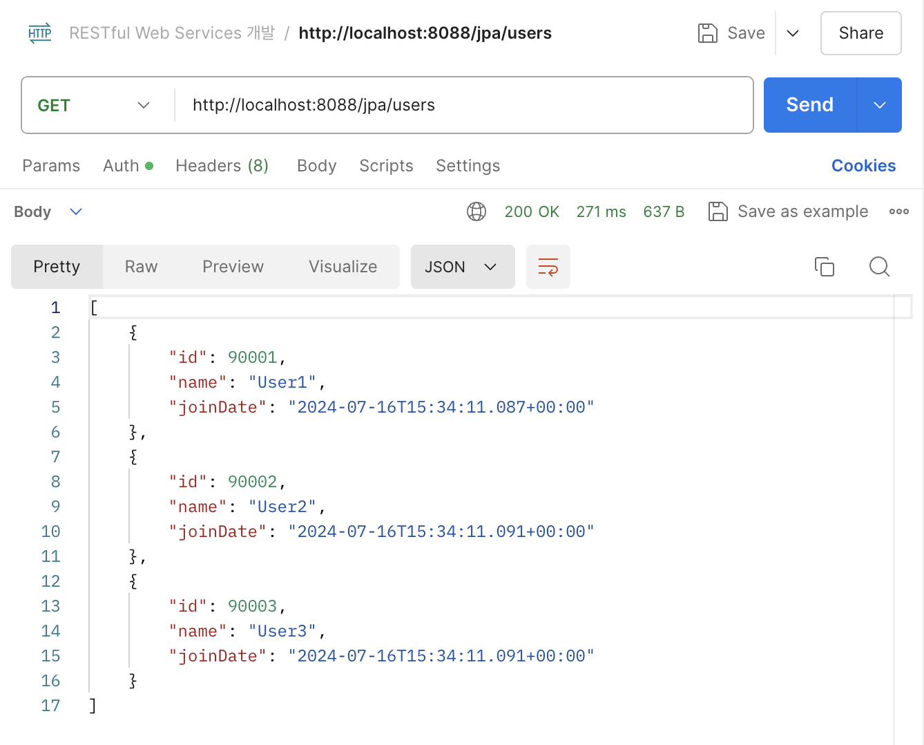 | [Spring Boot 3.x 를 이용한 RESTful Web Services 개발] 섹션 2. User Service API 구현 (0) | 2024.04.29 |