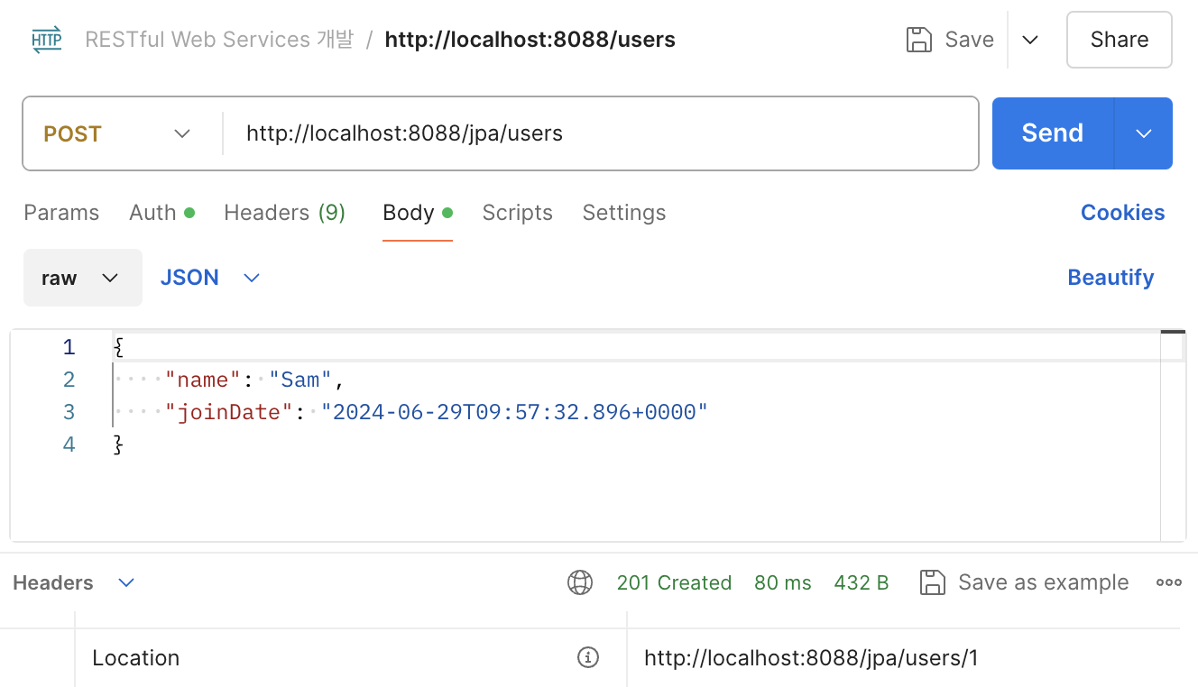 JPA를 이용한 새 게시물 추가 - HTTP POST Method