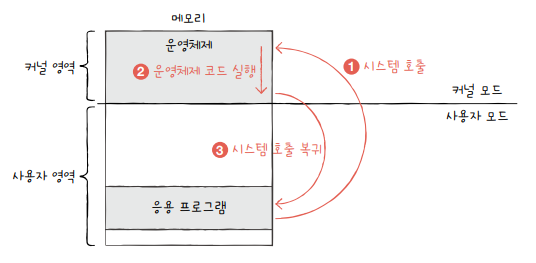 응용 프로그램의 요청 -> 운영체제) 응용 프로그램 대신 자원에 접근하여 요청한 작업 수행