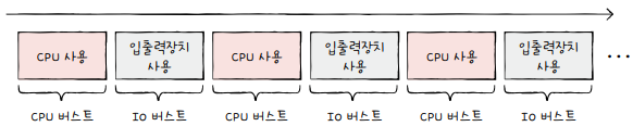 - CPU 버스트(CPU burst): CPU 이용하는 작업