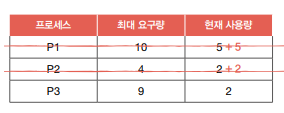 => P1에 남은 자원 5개 할당 -> P1 작업 정상적으로 완료
