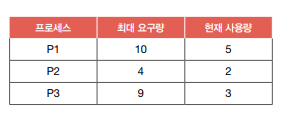 프로세스 P1, P2, P3이 모두 최대로 자원을 요구한 최악의 상황