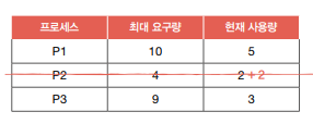=> P1에 남은 자원 5개 할당 -> P1 작업 정상적으로 완료