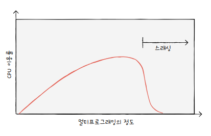 - CPU 이용률이 멀티 프로그래밍의 정도에 비례해서 증가하는 것 X