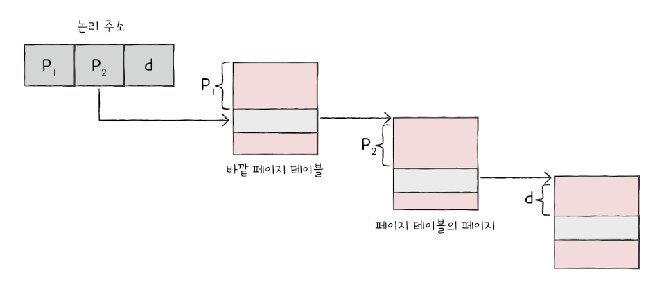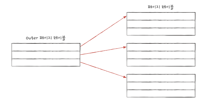 - 페이지 테이블을 페이징하여 여러 단계의 페이지를 두는 방식