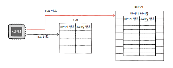 - CPU가 발생한 논리 주소에 대한 페이지 번호가 TLB에 있을 경우
