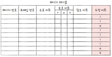 - 페이지 폴트 처리 루틴: 해당 페이지 -> 메모리로 적재/ 유효 비트 1로 설정