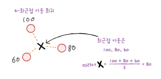 - 이웃 샘플의 수치 사용 -> 새로운 샘플 x의 타깃 예측