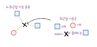 - 샘플들의 클래스 확인 -> 다수 클래스를 새로운 샘플의 클래스로 예측