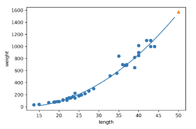 - 훈련 세트에만 잘 맞는 모델 -> 실전에 투입해 새로운 샘플에 대한 예측 만들 때 잘 동작 X