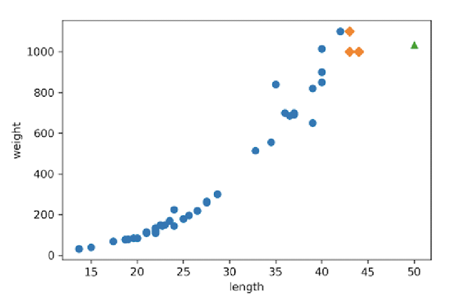 - k ↓ -> 훈련 세트에 있는 국지적인 패턴에 민감