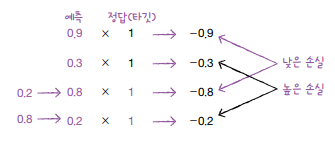 - 손실: -log(예측 확률)