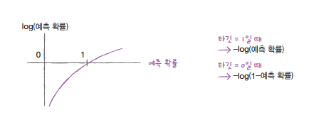 - 확률이 0에서 멀어져 1에 가까워질수록 손실은 아주 큰 양수가 됨