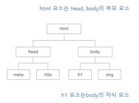 - 웹 문서에 있는 요소들 간의 부모, 자식 관계를 계층 구조로 표시한 것