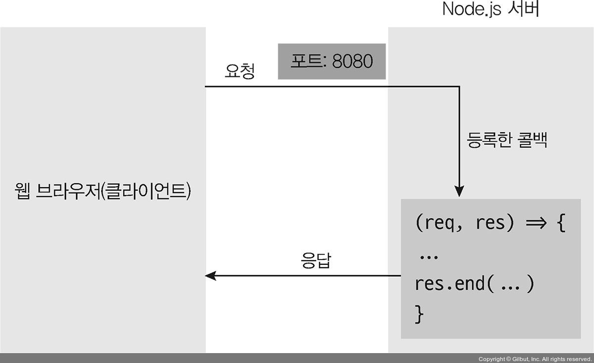 => 서버) 요청을 받는 부분과 응답을 보내는 부분 필요