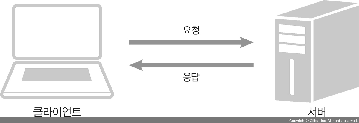 클라이언트 -요청(request)-> 서버 -응답(response)-> 클라이언트