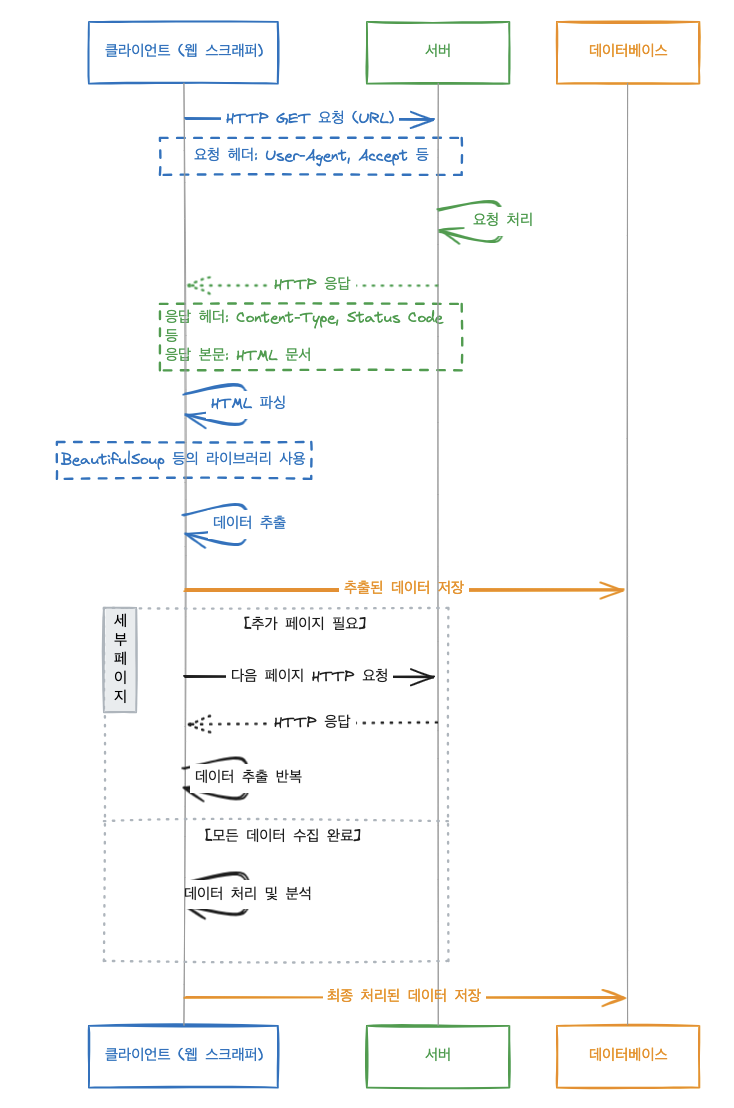 - 웹 스크래퍼) 웹 페이지의 HTML 구조 파싱 -> 원하는 데이터 추출