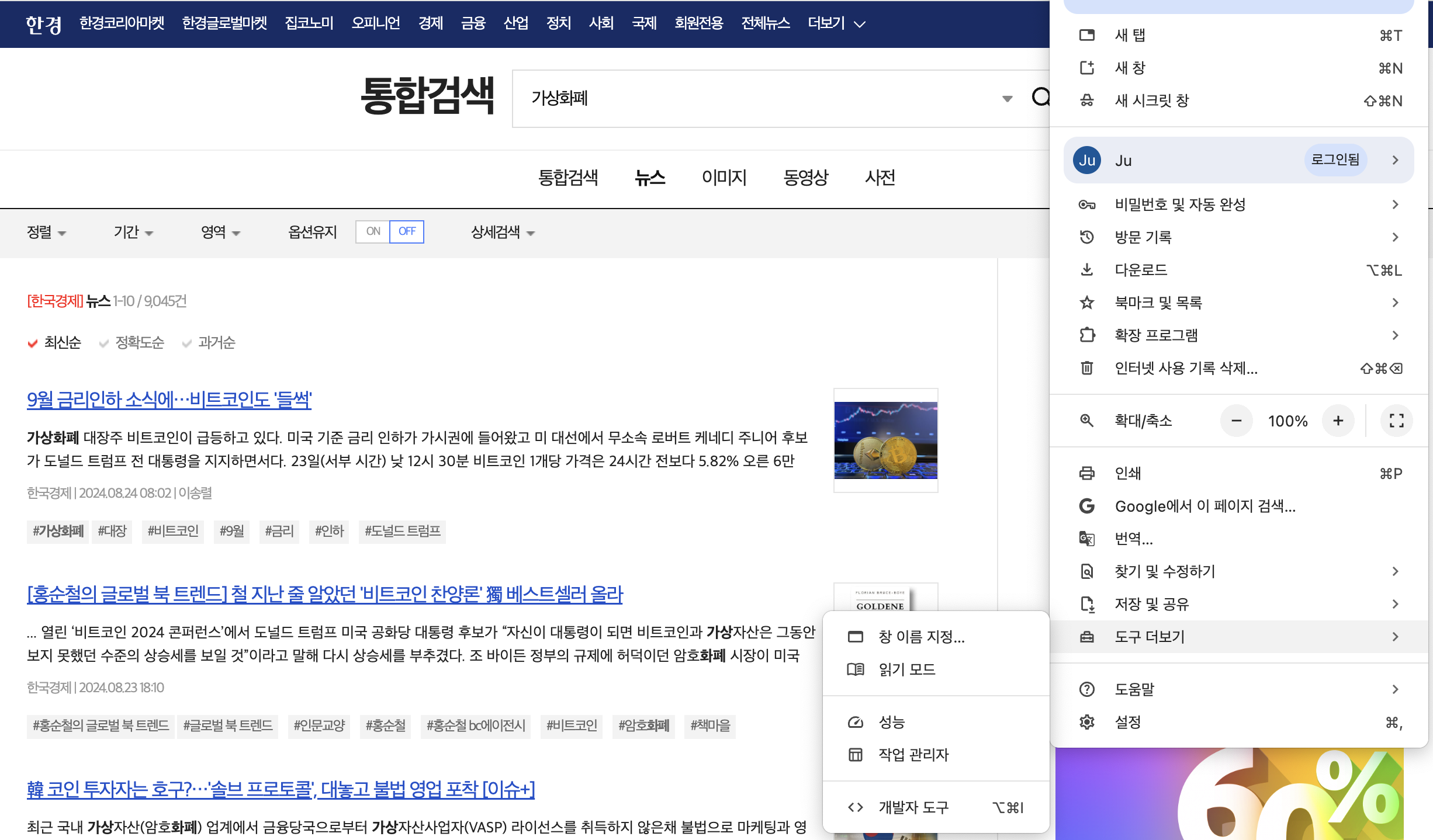 1. 한국경제신문에 가상화폐 검색 > 도구 더보기 > 개발자 도구