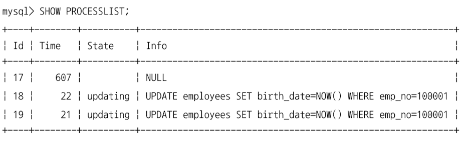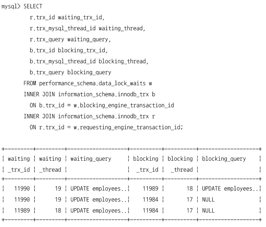 -> 해당 테이블의 읽기 잠금을 걸기 위해 먼저 실행된 SQL, 그 트랜잭션이 완료될 때까지 기다려야 함