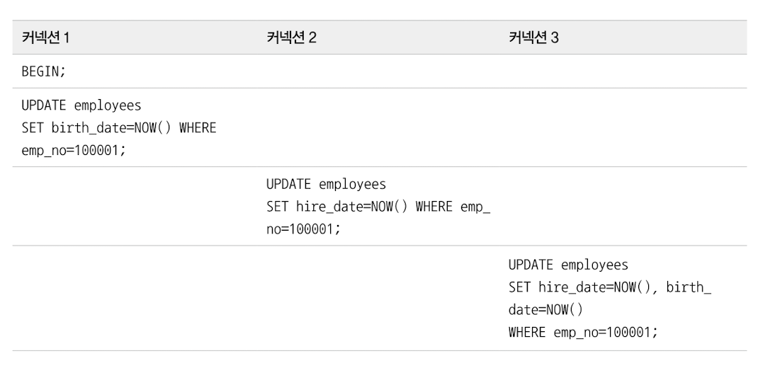 - 메타데이터 락(Metadata Lock): 테이블의 구조 잠금
