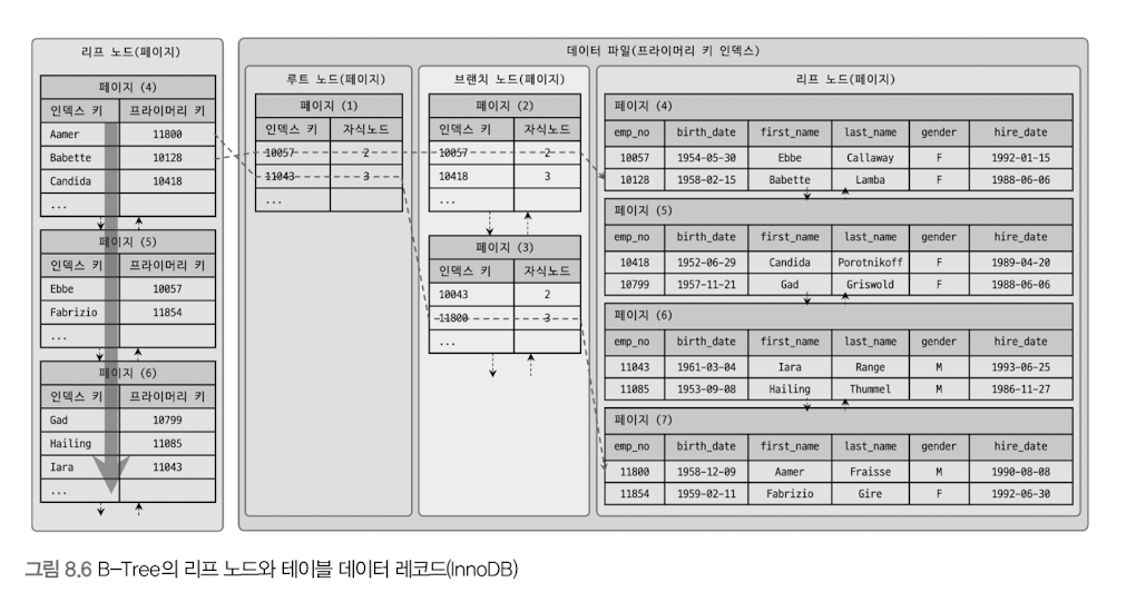 - 인덱스와 실제 데이터 레코드는 따로 관리