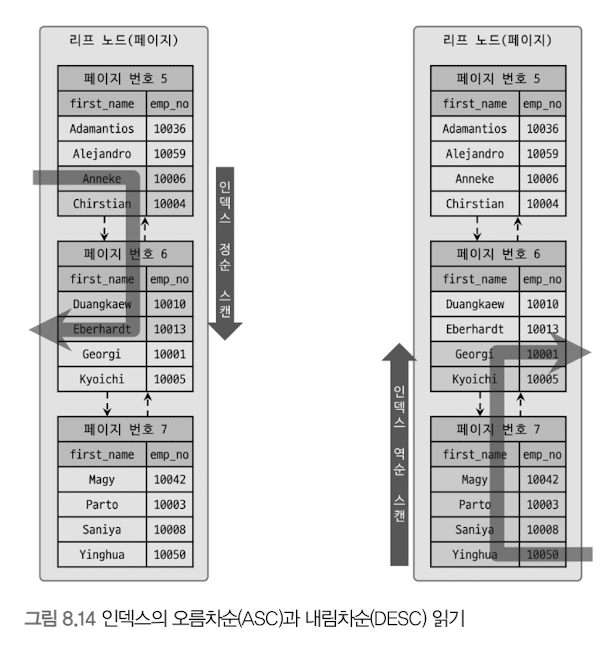 일반적으로 `ORDER BY ... DESC` 쿼리가 소량의 레코드에 드물게 실행되는 경우 -> 내림차순 인덱스 굳이 고려 X
