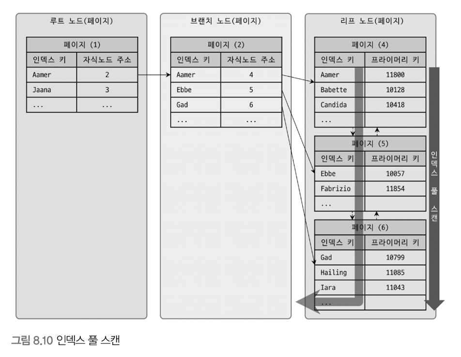 - 풀 테이블 스캔: 순차 I/O 사용