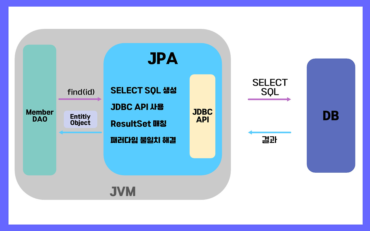 - `jpa.find(memberId)` → `Select SQL` 문 자동 생성 ⇒ DB에 조회