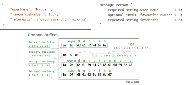 - 바이너리 기반 직렬화 사용 → 데이터를 사람이 쉽게 읽거나 디버깅하기 어려움