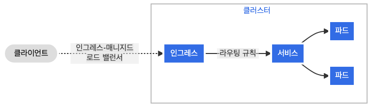 - 클러스터 외부에서 내부 서비스에 접근할 수 있게 해줌
