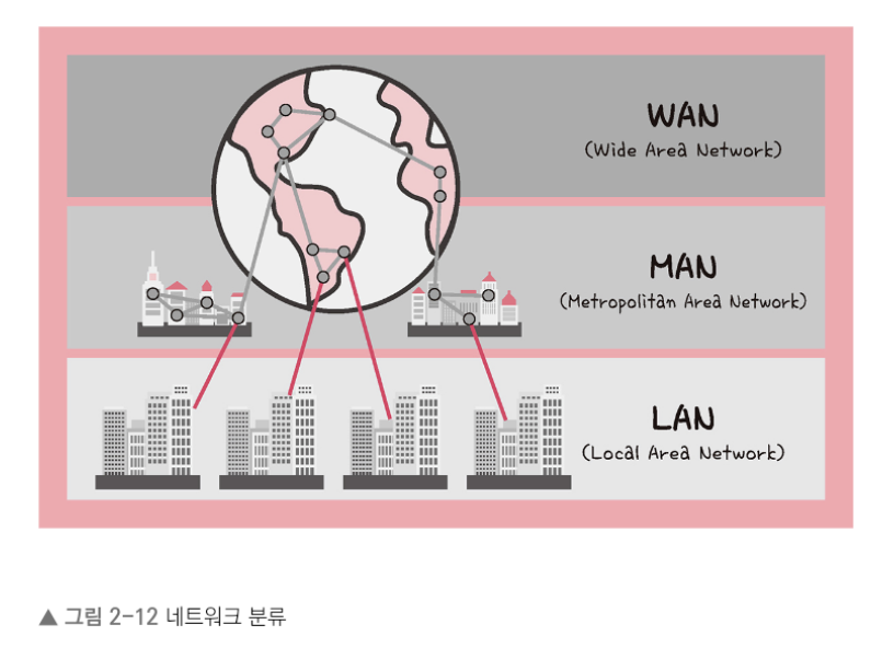 - MAN(Metropolitan Area Network): 대도시 지역 네트워크