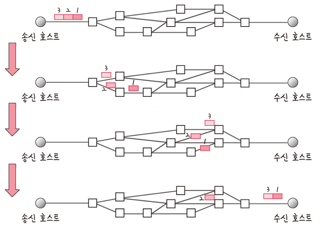 - 매체 타입(무선, 유선), 패킷 크기, 라우터의 패킷 처리 시간에 영향을 받음