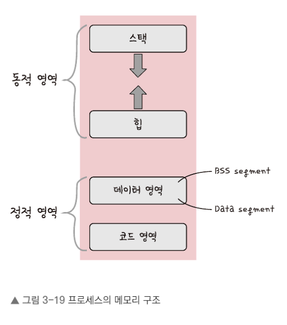 프로그램 실행 -> 프로세스 생성 -> 프로세스 주소 값들이 스택, 힙 등의 구조 기반으로 메모리 할당